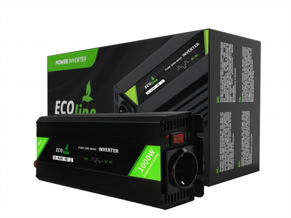 Ontdek de kracht en betrouwbaarheid van de EcoLine 1000W Zuivere Sinus Auto Omvormer. Deze geavanceerde omvormer zet moeiteloos 24V gelijkstroom om naar 220V/230V wisselstroom met een continu vermogen van 1000 watt, ideaal voor reizen, kamperen en als back-up stroomvoorziening.